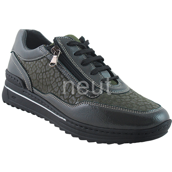- Fermeture éclair sur le bord latéral du laçage augmentant l’ouverture et facilitant le chaussage