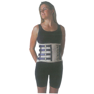 - Les ceintures sur mesure en coutil et tissu élastique baleinées sont indiquées dans le cas de contention vertébrale lombaire où l'on souhaite garder le rachis lombaire en "semi-liberté"