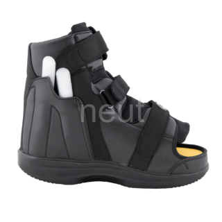 - Tige haute (16 cm) avec double fermeture par bandes auto-agrippantes permettant de diminuer la pression plantaire