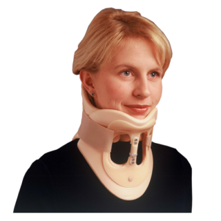 - Collier cervical postopératoire et post-traumatique avec fenêtre pour trachéotomie ou accès aux cicatrices