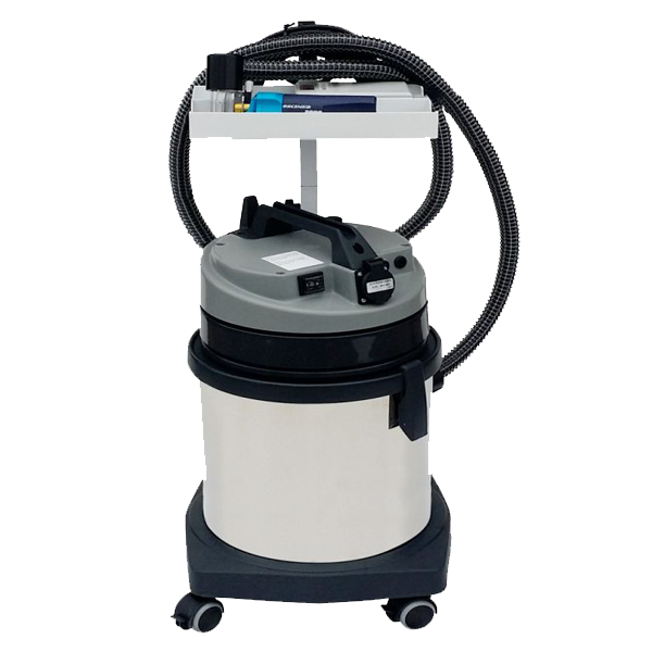 - Possibilité de raccordement à une unité d’aspiration : aspirateur 2 vitesses, 3 filtres, 0,3 micron